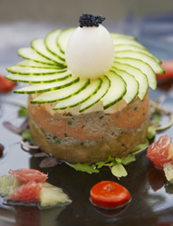 Talented head Chef Viraj Athukorala came from Clos Maggiore in Covent Garden and is influenced by French cuisine and fine dining. We will use two dining areas, the larger River Room and the Library, a private dining room for twelve. At breakfast, a round table groans with fresh fruits, creamy yoghurts and warm pastries; from the extensive cooked menu, order full English, fresh or smoked trout - and more!